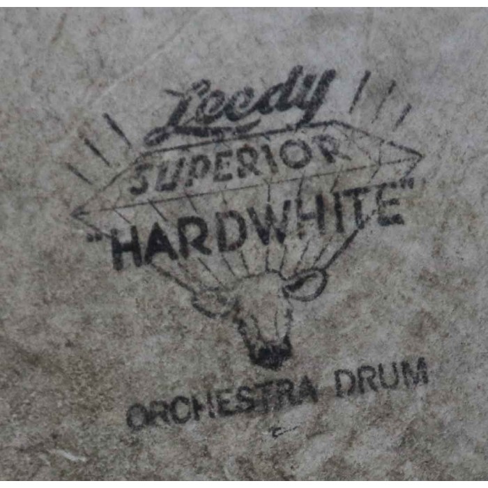 This is a Slingerland era Leedy Broadway model snare drum in mint condition. This unusual 7" x 14" shell size does not appear in the Leedy catalogs from this era. With its solid maple, steam bent shell, this drum is essentially a Slingerland Radio King snare drum with Leedy hardware. The hardware includes a Leedy style tone control, Leedy Beavertail lugs, Leedy three point extended bridge throw-off and Slingerland nickel over brass stick saver rims. The drum also has its original " Leedy Superior Hardwhite Orchestral drum” calf batter head. Original Slingerland snares and a mid-50's early brass oval Slingerland style Leedy Chicago badge.
