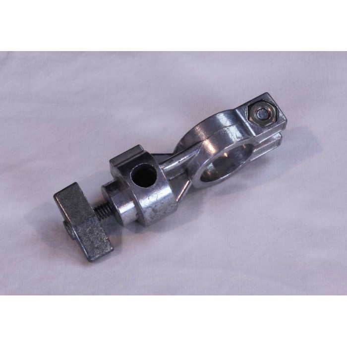 This is a completely original mid-1970's MemriLoc accessory clamp. It is model 61-0837-049 designed to clamp to a 1" I.D. stand to accommodate a 3/8" rod. The pull screw and Rogers logo thumb screw are original to the clamp. This is a great accessory for mounting cowbells, woodblocks, stick holder or other accessory to a vintage Rogers MemriLoc outfit.