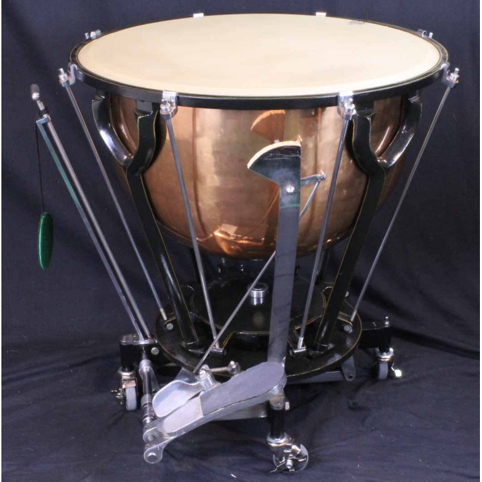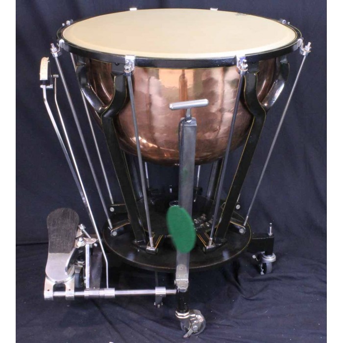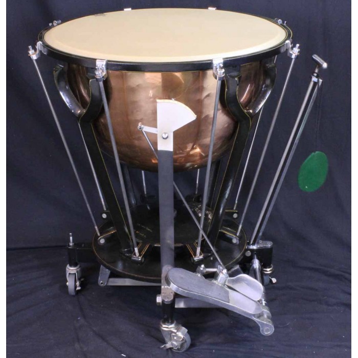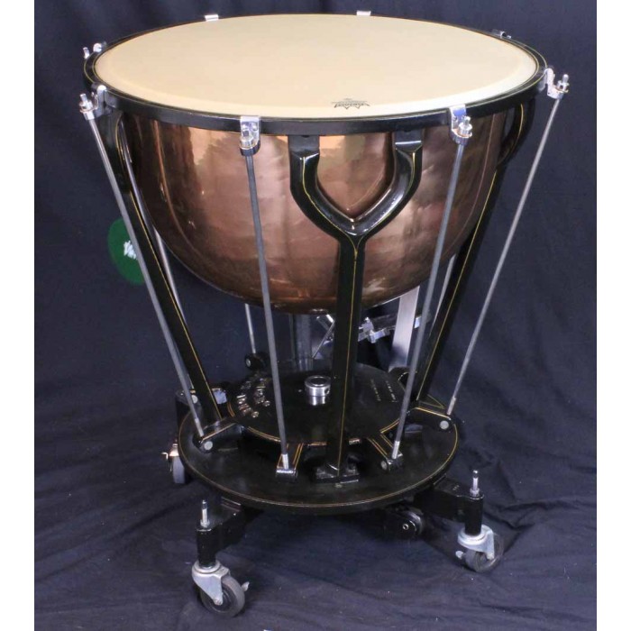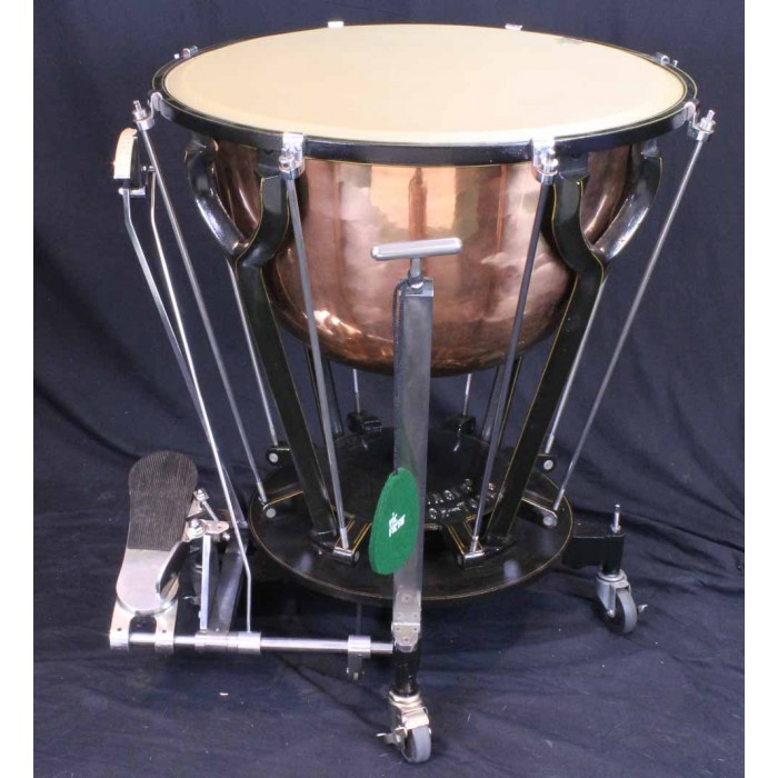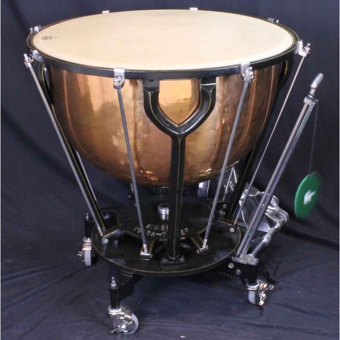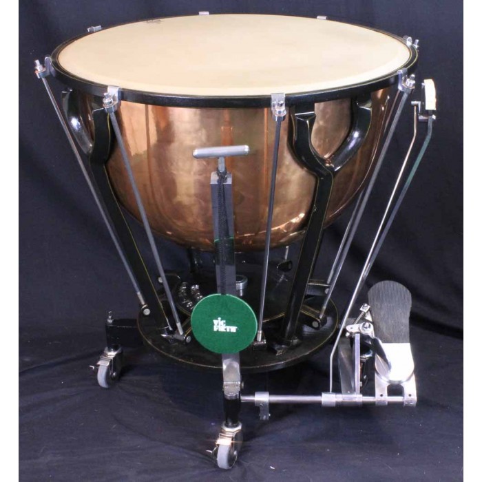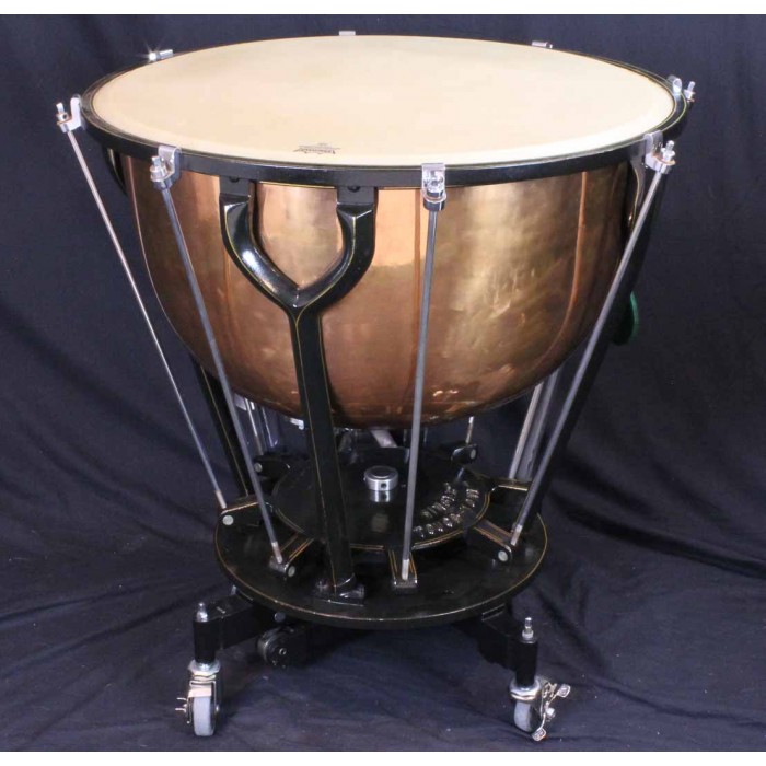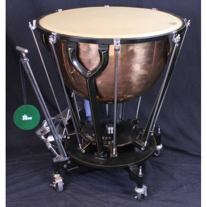 This is a fabulous pair of Hinger Touch-Tone timpani in like new condition. The bowl sizes are 28" and 25" making these the inner pair of a graduated set of 4 drums. Each drum comes complete with a heavy quilted zip cover and original felt lined masonite head cover with the original maintenance instructions on the top. Hinger timpani are among the highest quality modern drum ever produced. Unique features include the fine tuning adjustment near the player and attached locking wheels. Any timpanist looking for Hinger Touch-Tone timpani will be thrilled with this pair of drums. Another set in this condition at this price will be hard if not impossible to find.