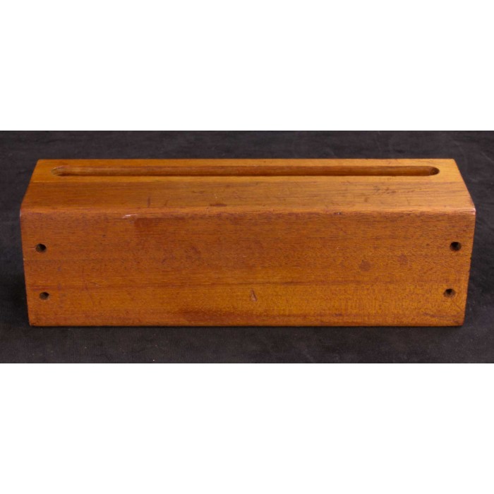This is a lightly used, large BLOCKS brand wood block. Made from mahogany, it is similar to the Ron Vaughn model W4.5. It measures 11" x 3 3/8" x 3 3/8" tuned to A natural. It is in perfect condition with no dents or cracks. The only sign of use the previous owner's initials marks in sharpee pen on the top and sides. It has mounting holes on the bottom so it can be suspended from a stand. This is a great sounding block that will make a welcome addition to any percussionists trap collection.