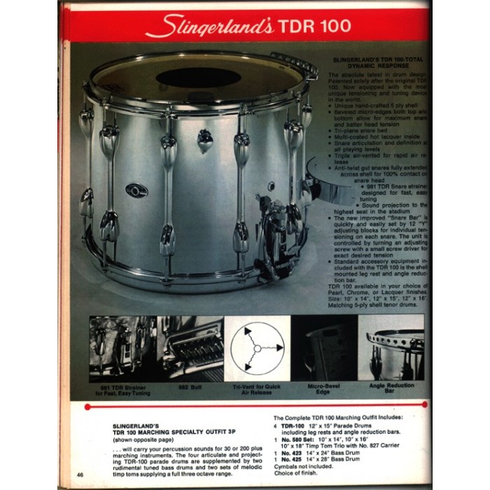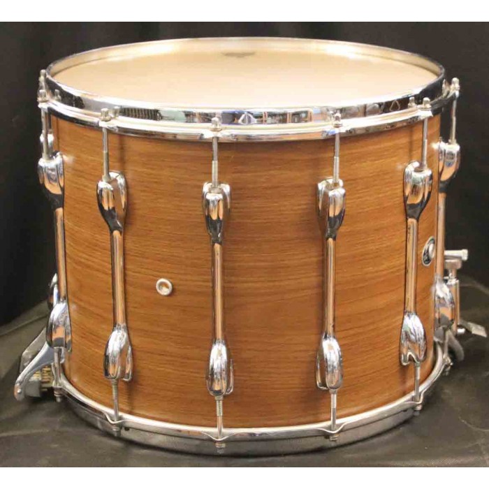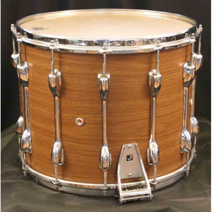 This is a beautifully reconditioned Slingerland 1970s TDR 100 model field drum. This field drum has been completely reconditioned and brought back to life. The shell has been recovered but there are no alterations to the bearing edges. They are still very sharp and original. All original hardware is clean with only minor marks not affecting the performance of the drum. The snares are original gut snares that respond perfectly. This is a 12-lug drum providing excellent tensioning of the 15" heads. These drums have a heavy 5-ply maple shell with no reinforcing rings giving the instrument an excellent full and “open” sound with superior response. These field drums have been used by many generations of orchestral players for that stated reason. This is an excellent opportunity to add this attractive drum to your concert snare drum collection.
